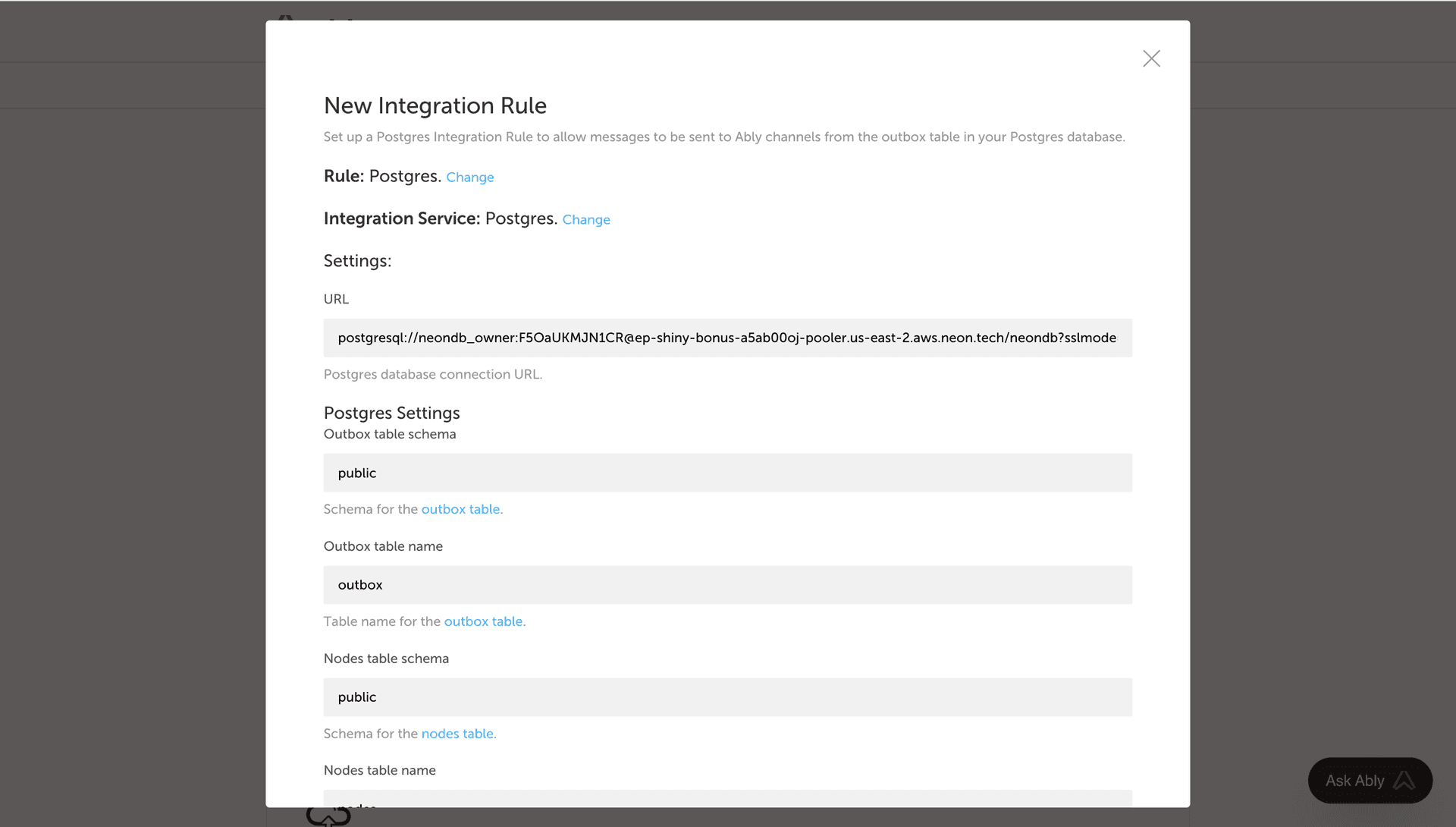 Next, in the integration rule, enter the DATABASE_URL environment variable value obtained and proceed.